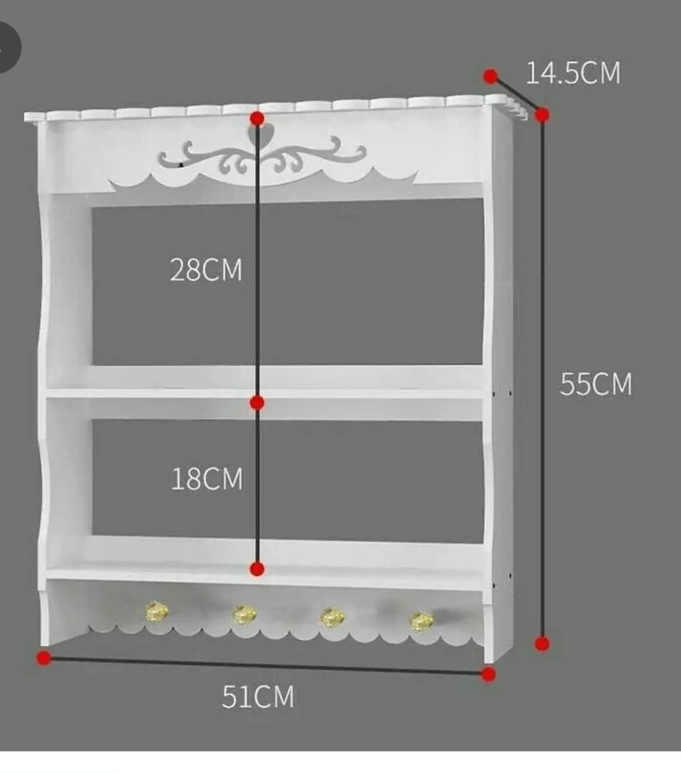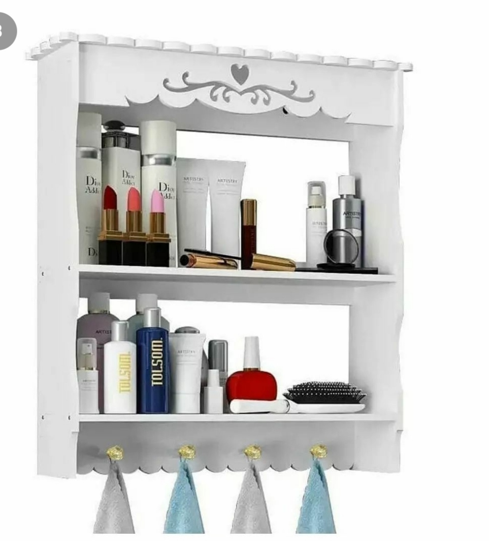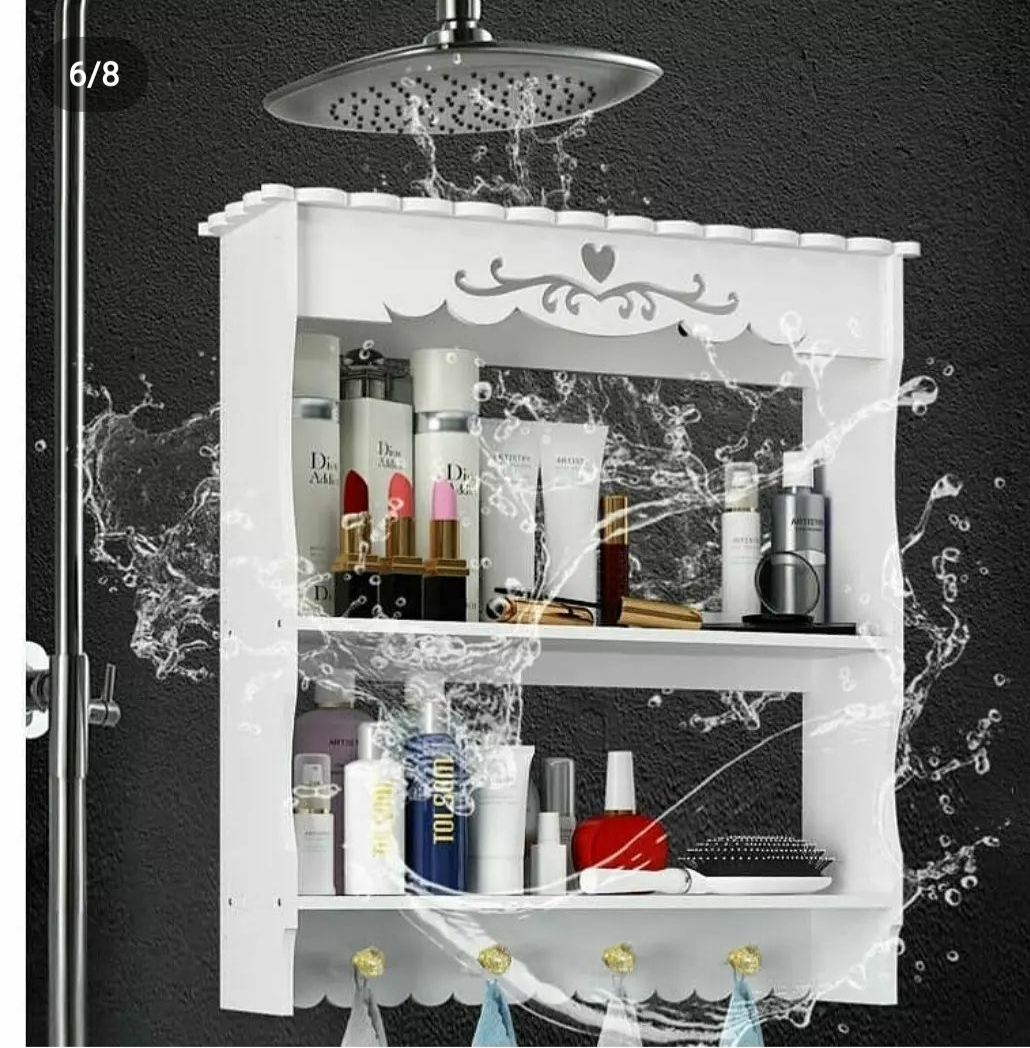 شلف دیواری مناسب حمام و سرویس بهداشتی جنس پی وی سی ضداب و قابل شستشو ارتفاع 55 عرض50 عمق14 توجه:محصول به صورت غیر مونتاژ پست میشه